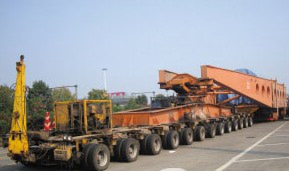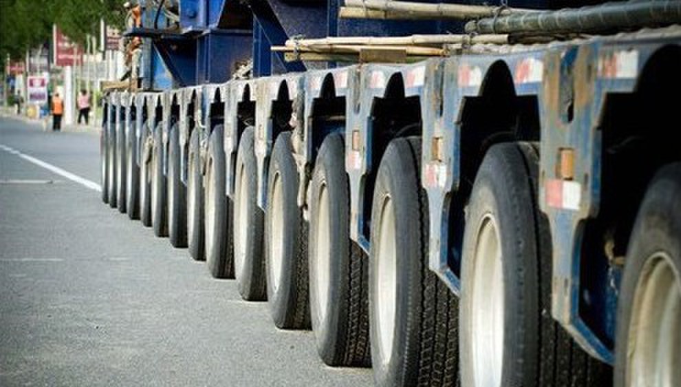 普通小車4個(gè),貨車8到12個(gè),6軸的半掛車最多也就22個(gè)輪子。但據(jù)報(bào)道此車有230個(gè)輪子,為兩節(jié)4線13軸的雙輪共計(jì)108個(gè)輪子,加上兩個(gè)牽引頭共計(jì)22個(gè)輪子(應(yīng)該是一個(gè)6X4的一個(gè)8X4的),一共230個(gè)輪子。