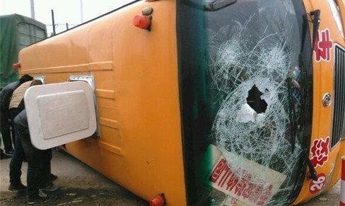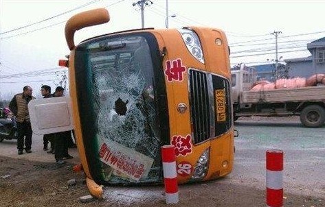 幼兒校車(chē)發(fā)生側(cè)翻,當(dāng)時(shí)車(chē)內(nèi)有三十余幼兒,部分幼兒不同程度的受傷。車(chē)內(nèi)有血跡。
