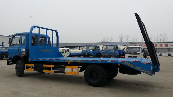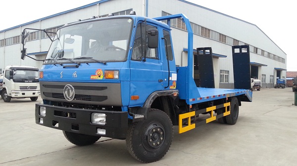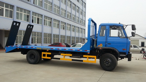 昨天平板運(yùn)輸車廠家介紹了高性價(jià)比的解放1163單橋國(guó)四平板運(yùn)輸車。平板運(yùn)輸車是專門用來拉挖掘機(jī)鉤機(jī)叉車等大型機(jī)械設(shè)備和工程機(jī)械的專用汽車。區(qū)別于一般的貨車載貨載重分布均勻的特點(diǎn),拿平板運(yùn)輸車最常見的用途拉挖掘機(jī)來說,挖掘機(jī)上下時(shí)必須要爬梯才能方便上下。挖掘機(jī)上下的時(shí)候?qū)ε捞莺驼嚨臎_擊非常大,所以必須要求爬梯的強(qiáng)度非常強(qiáng)才能經(jīng)久耐用。爬梯一般是用手動(dòng)舉起和放下,所以平板運(yùn)輸車廠家湖北俊龍專用汽車有限公司的平板運(yùn)輸車產(chǎn)品都在爬梯上裝上兩根彈簧,而且對(duì)彈簧、彈簧支架的尺寸和位置通過精確計(jì)算設(shè)計(jì)制作,一個(gè)人就可以很方便的舉起和落下。平面承重部分因?yàn)橥诰驒C(jī)停靠的位置是主要負(fù)重區(qū),我們?cè)诔兄貐^(qū)加強(qiáng)方筒鋼鋪放密度,確保經(jīng)久耐用。目前是平板運(yùn)輸車銷售的旺季,也正時(shí)值柴油車尾氣排放國(guó)三和國(guó)四切換的時(shí)候,很多平板運(yùn)輸車用戶苦于沒有合適的國(guó)四平板運(yùn)輸車產(chǎn)品,昨天平板運(yùn)輸車廠家湖北俊龍專用汽車有限公司為您推薦了一款一汽解放出品底盤的平板運(yùn)輸車產(chǎn)品,但是得益于中國(guó)二汽東風(fēng)公司的市場(chǎng)占有率、服務(wù)站分布、配件的普遍性以及維護(hù)保養(yǎng)保修的方便快捷,加上價(jià)格優(yōu)勢(shì)還有上牌所需資料的靈活性,部分用戶對(duì)東風(fēng)的產(chǎn)品情有獨(dú)鐘。鑒于此平板運(yùn)輸車廠家介紹一款東風(fēng)國(guó)四單橋平板運(yùn)輸車,參數(shù)如下: