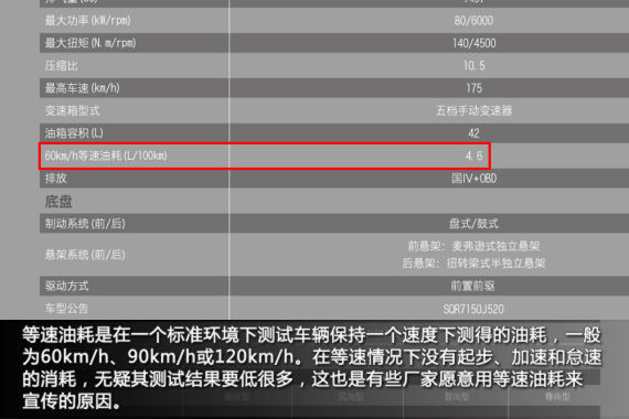 而廠家除了會公布工況油耗外,還有一些廠家更喜歡用等速油耗來宣傳。其字面就表明了等速油耗的意義,它是在一個標準環(huán)境下測試車輛保持一個速度下測得的油耗,一般為60km/h、90km/h或120km/km,在等速情況下沒有起步、加速和怠速的消耗,無疑其測試結(jié)果要低很多,這也是有些廠家愿意用等速油耗來宣傳的原因。