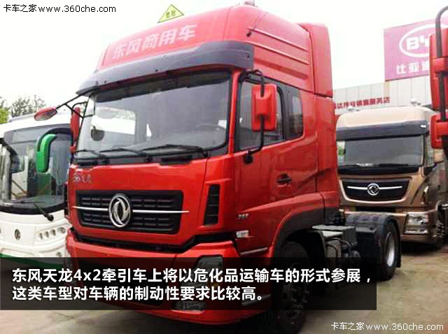 另外東風(fēng)天龍4x2牽引車上安裝有危險標(biāo)識,可見其將以?;愤\輸車的形式參展,這類車型對車輛的制動性要求比較高。