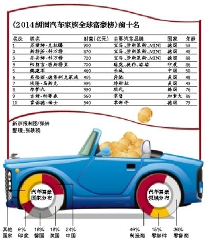 胡潤全球汽車富豪榜昨日發(fā)榜,寶馬汽車的三位股東包攬榜單的前三名。而中國有11位富豪上榜,上榜人數(shù)位列世界各國之首。長城汽車董事局主席魏建軍(點(diǎn)擊查看最新人物消息) 以460億元的財(cái)富位列中國汽車大王之首。而傳統(tǒng)汽車強(qiáng)國日本卻無一人入選。這是胡潤研究院首次發(fā)布汽車富豪榜。