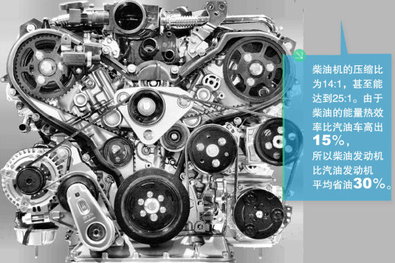 而柴油機這方面具有先天的優(yōu)勢,柴油機直接壓縮空氣,因此壓縮比可比汽油機高出許多。汽油機的壓縮比為8:1至12:1,而柴油機的壓縮比為14:1,甚至能達到25:1。由于柴油機具有更高的壓縮比,因此效率也更高也不是一般的省油,由于柴油的能量熱效率比汽油車高出15%,所以柴油發(fā)動機比汽油發(fā)動機平均省油30%。