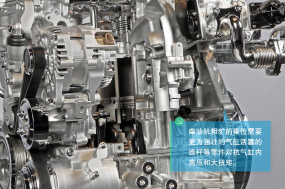 雖然柴油機具有壓縮比高,馬力大,燃燒充分,省油特點,但是它的制造成本也要比一般汽油發(fā)動機高。柴油機暴躁的燃燒性質(zhì)和沒有節(jié)氣門導致了它的動力更直接,相應的平順性沒有汽油機好(這不是絕對的)。柴油機粗獷的秉性需要更為強壯的氣缸活塞的連桿等零件對抗氣缸內(nèi)高壓和大扭矩,而且噴油嘴上霧化器更為精密,傳感器也大有文章。
