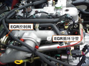 三、找EGR系統(tǒng)的廢氣循環(huán)導(dǎo)管和EGR閥門。廢氣循環(huán)導(dǎo)管與排氣管相連,取一部分廢氣再循環(huán),另一部分廢氣則從排氣管排出。