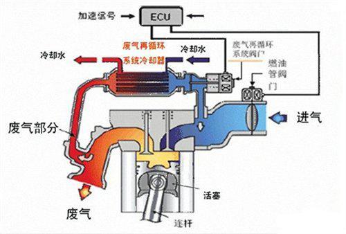 三、EGR系統(tǒng)減少?gòu)U氣氮氧化合物含量。廢氣再循環(huán)系統(tǒng)即EGR,是將柴油機(jī)產(chǎn)生的廢氣的極少部分再送回氣缸。再循環(huán)廢氣由于具有惰性將會(huì)延緩燃燒過(guò)程,因?yàn)榈獨(dú)夂脱鯕庵挥性诟邷馗邏合虏拍墚a(chǎn)生,也就是說(shuō)燃燒速度將會(huì)放慢從而導(dǎo)致燃燒室中的壓力形成過(guò)程放慢,降低了氮氧化合物的產(chǎn)生。