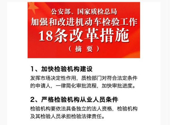 附:公安部、國家質(zhì)檢總局加強(qiáng)和改進(jìn)機(jī)動(dòng)車檢驗(yàn)工作18條改革措施(摘要)