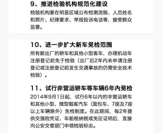 另外新政中還規(guī)定了一種情況需要年檢“出廠后2年內(nèi)未申請(qǐng)注冊(cè)登記或注冊(cè)登記前發(fā)生交通事故的仍需檢查”,不過出現(xiàn)這種情況的概率應(yīng)該不大。