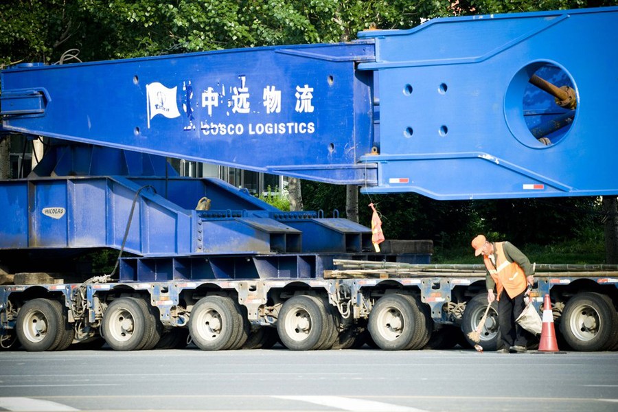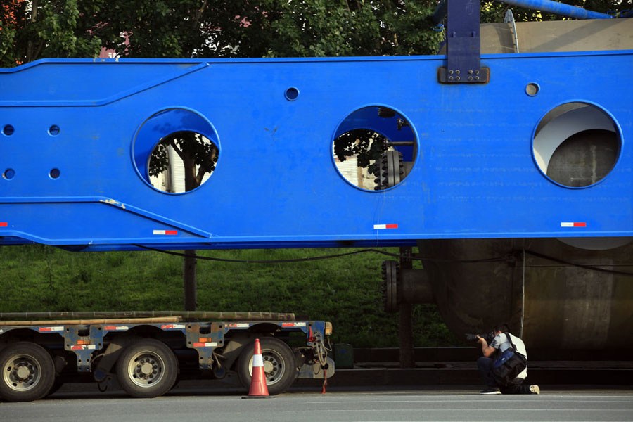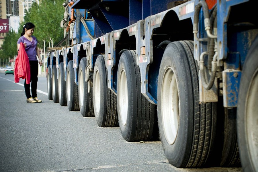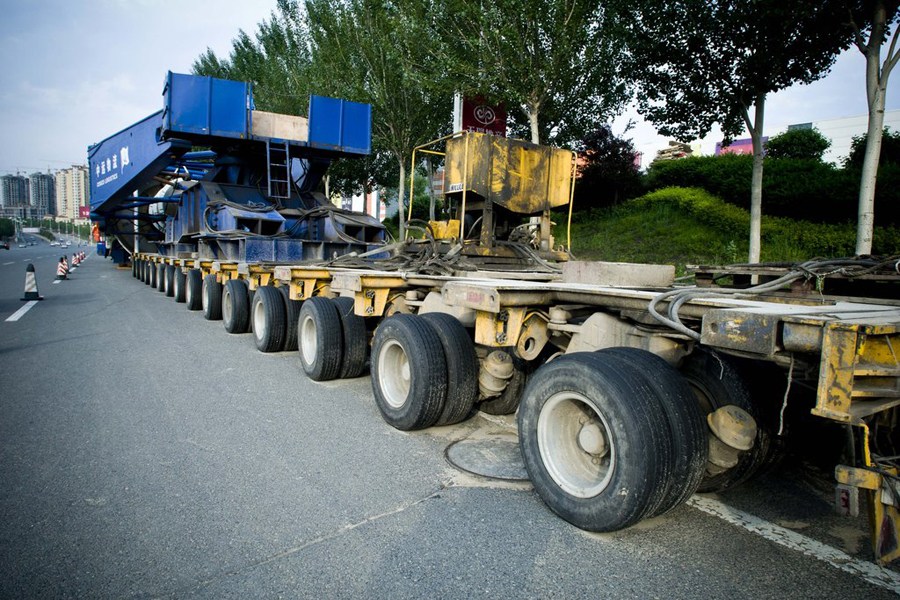 6月6日,有網(wǎng)友報(bào)料一輛有252個(gè)輪胎的“巨無(wú)霸”大貨車(chē)來(lái)到吉林市,此車(chē)車(chē)頭有12個(gè)輪,車(chē)身有240個(gè)輪,總共252個(gè),網(wǎng)友戲稱(chēng)是“成精的蜈蚣”。該大貨車(chē)車(chē)體共有30組車(chē)輪,每組8個(gè)輪胎,共計(jì)240個(gè)車(chē)輪,車(chē)體前后兩部分是平板車(chē),中間是被安放在鋼架上的大罐,大罐呈圓柱形,外邊有一圈螺旋,全身鋼鐵,車(chē)體上印有“中運(yùn)物流”字樣.據(jù)了解,此車(chē)車(chē)體加上運(yùn)載物全長(zhǎng)近90米,運(yùn)載車(chē)輛是特種車(chē)輛,名稱(chēng)為“橋式車(chē)組”。運(yùn)載的貨物巨大,高度達(dá)5.39米,長(zhǎng)度為29.08米。從遼寧送達(dá)吉林,路程1000多公里,而且東北地區(qū)限高為5米,所以此運(yùn)輸難度巨大,而將如此龐然大物運(yùn)送到指定地點(diǎn),在東北三省也是第一次。據(jù)參與護(hù)送的一位交警表示,僅車(chē)組人員就有40余名,護(hù)送的隊(duì)伍中有吊車(chē)、平板車(chē)、小型貨車(chē)和客車(chē)等車(chē)輛,車(chē)隊(duì)約有20輛。
