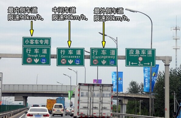 一定要注意:部分路段的限速是分車道的。同一方向的多條車道限速并不一樣。