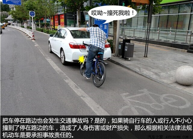 不知大家平時有沒有把車停在路邊的情況(不是路邊停車位),如果這時有個騎自行車的人或者行人沒留神撞到您的車,那您可能就要倒霉了,因為自行車或行人撞上您的車受傷或者他們的物品受損的話,不僅他們不用賠償您,您還要賠償他們。不管您信不信,這是真實發(fā)生在我朋友身上的案例。