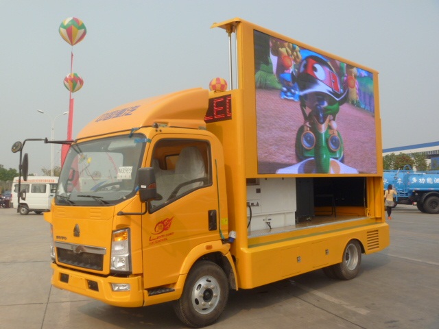 升級(jí)版是LED電子屏式,搭配發(fā)電機(jī)組和電腦,播放宣傳片、廣告片等。造價(jià)相對(duì)較高。但是回報(bào)率也非常高,比卷簾式更容易吸引人的眼球。一般來說根據(jù)車型的大小,可以做到不同尺寸的LED液晶顯示屏,有單色和彩色。彩色的又有不同的色深和像素點(diǎn)距,搭配不同功率的發(fā)電機(jī)組和電腦及散熱系統(tǒng)組成。價(jià)格也根據(jù)車型不同差別較大。