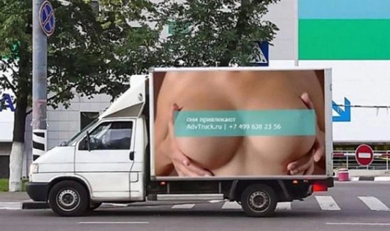 流動(dòng)廣告上展露的女性胸部成為了日發(fā)500起交通事故的肇事原因。