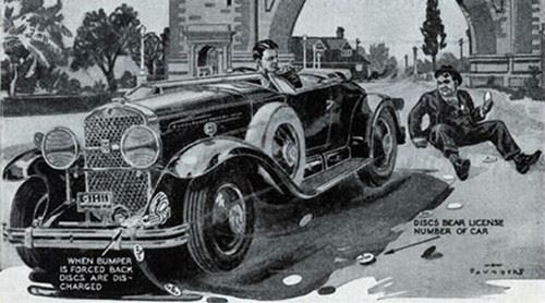 還是美國(guó)的《大眾機(jī)械》,1931年登出這樣一個(gè)發(fā)明:在車頭安裝一套記有車主姓名和駕照號(hào)碼的身份牌,一旦撞到行人,這些身份牌就會(huì)自動(dòng)彈出,受害人只需要見到一個(gè)身份牌,就可將肇事者繩之以法。