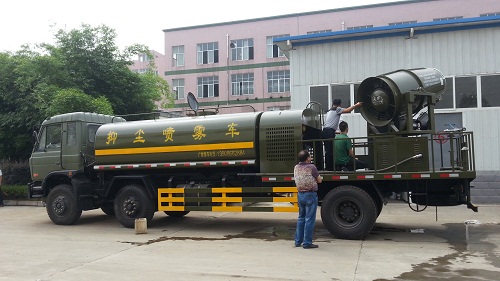 霧炮車又叫多功能抑塵噴霧車。主要是采用高壓和超聲霧化,來將普通水或者含有吸附劑的溶液霧化,用高壓水泵和高壓風機將水霧送到高空。新聞報道過年期間由于煙花爆竹燃放導致霧霾橫行,空氣質(zhì)量很差,很多老人和兒童都得了呼吸道疾病,需要前往醫(yī)院做超聲霧化。其實原理大同小異:醫(yī)院的超聲霧化是將生理鹽水超聲霧化后通過管道用呼吸面罩使人吸收,達到治療呼吸道疾病的效果。霧炮車類似于一個大型的超聲霧化器,它對我們每個區(qū),每個鎮(zhèn),每個工業(yè)園和小區(qū)的作用就像醫(yī)院的超聲霧化器對每個人的呼吸道疾病一樣。不過是效率更高,范圍更廣。霧炮車噴灑普通水的時候可以釋放負離子,對空氣中的微粒有一定吸附作用,起到降低PM10和PM2.5的作用。釋放的負離子可以讓空氣更清新。冬天天氣干燥還可以增加小范圍的空氣濕度,讓人體感覺更舒適,夏天輕霧蒙蒙可以起到降溫的作用。