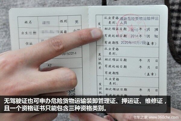 從上面可以了解到,從業(yè)資格證并不一定必須擁有駕駛證,無駕駛證也可申辦危險貨物運輸裝卸管理證、押運證、維修證。