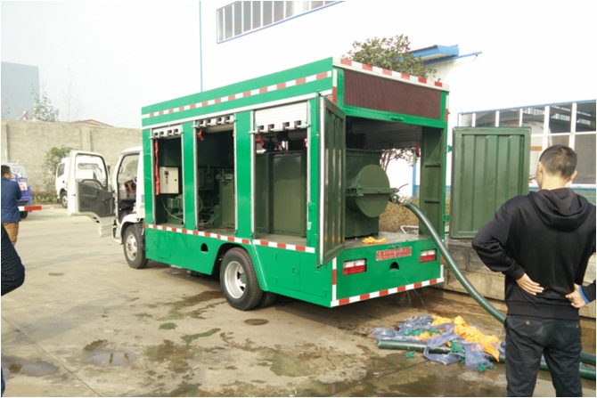 該車是我公司專門針對環(huán)衛(wèi)疏通保潔公司設(shè)計(jì)制造的,采用圓筒濾網(wǎng)加無軸螺旋的結(jié)構(gòu)對化糞池的污物進(jìn)行處理,實(shí)現(xiàn)固液分離,可即抽即排。抽出的污物不需要像傳統(tǒng)的吸污車那樣運(yùn)到另一個(gè)地方倒掉,可當(dāng)場處理,處理后的污水通過市政管網(wǎng)排走,糞渣可直接打包,當(dāng)生活垃圾處理。即節(jié)省了運(yùn)輸費(fèi)用,又提高了處理速度。