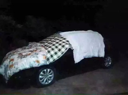 而我們機(jī)智的網(wǎng)友早已想好了應(yīng)對(duì),為愛車搭起了“防雹帳篷”▼