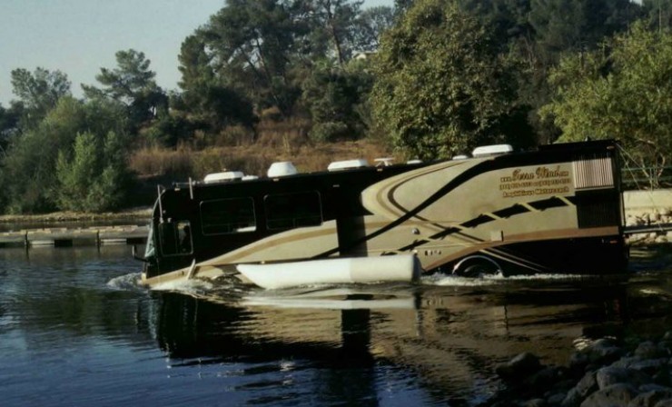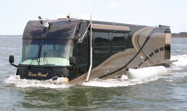 常見的水陸兩棲車以小車為主。但大型豪華房車水陸兩用就比較少見了。近日一輛水陸兩棲豪華房車亮相。