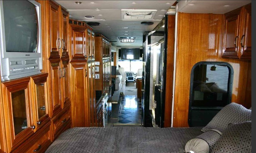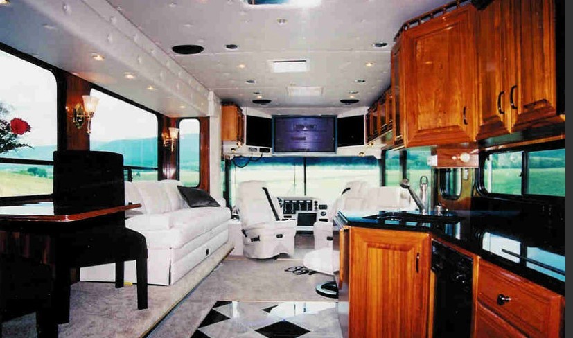 車內沙發(fā)、電視、酒吧臺、床、娛樂設施一應俱全,寬敞舒適。