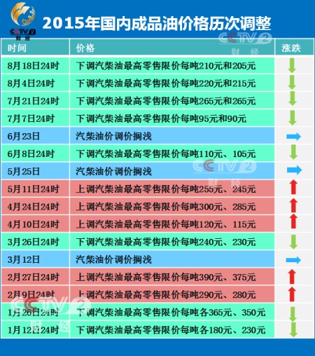 國(guó)家發(fā)改委今天宣布,自8月19日0時(shí)起下調(diào)國(guó)內(nèi)汽柴油價(jià),汽油每噸下調(diào)210元,柴油每噸下調(diào)205元。全國(guó)平均來(lái)看折合90號(hào)汽油每升下調(diào) 0.16元,0號(hào)柴油每升下調(diào)0.18元,92號(hào)汽油每升降0.17元,95號(hào)汽油每升降0.18元。國(guó)內(nèi)成品油價(jià)格年內(nèi)實(shí)現(xiàn)“五連跌”。
