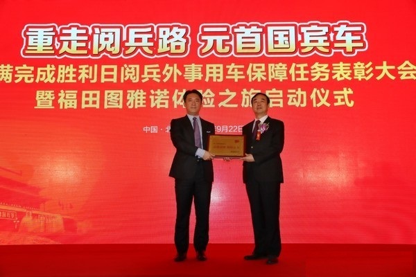 9月22日,北京人民大會堂盛大舉行了勝利日閱兵外事使用車保障任務(wù)表彰大會,北京市人民政府對勝利日閱兵期間做出突出貢獻(xiàn)的福田汽車集團(tuán)進(jìn)行表彰,向福田汽車集團(tuán)頒發(fā)了“品質(zhì)過硬 保障有力”的榮譽(yù)稱號。