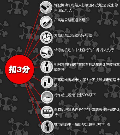 ●駕駛機(jī)動(dòng)車違反道路交通信號(hào)燈通行的(原來記3分)。