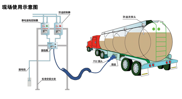 上圖是下裝油系統(tǒng)的整體工作畫面,由此可以看出,靜電接地帶的重要性。大型加油站的這種靜電接地裝置主要是固定式的,這種一般是加油站解決,他們?cè)诖笮偷刂饔蛶?kù)附近安裝一個(gè),每臺(tái)加油車過(guò)來(lái)進(jìn)行加油時(shí),可快速連接起來(lái),靜電接地報(bào)警器是油品裝卸場(chǎng)合防靜電的標(biāo)準(zhǔn)化產(chǎn)品,不僅能將液體轉(zhuǎn)運(yùn)過(guò)程中產(chǎn)生的靜電導(dǎo)入大地,還能夠全程自動(dòng)檢測(cè)接地狀況。當(dāng)接地不良或斷開時(shí)聲音報(bào)警,以確保生產(chǎn)作業(yè)安全。