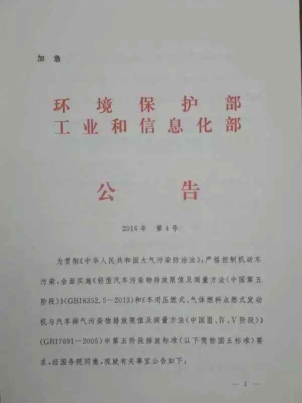 國五來了:環(huán)保部工信部關(guān)于國五實施的公告