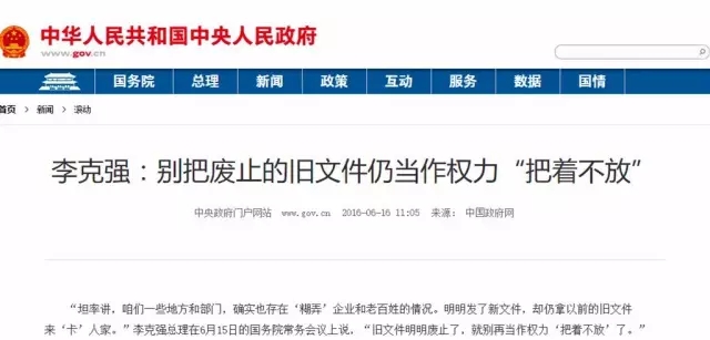 會(huì)上總理一再強(qiáng)調(diào),“舊文件明明廢止了,就別再當(dāng)作權(quán)力把著不放了?!?/SPAN>