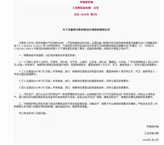 距離環(huán)保部2016年第4號文件的頒布已經(jīng)快一年了,機動車排放標(biāo)準(zhǔn)國五的實施是分區(qū)域,分車型,分階段的。繼東部十一省市從年中開始對環(huán)衛(wèi)、郵政、公交等車型實施國五標(biāo)準(zhǔn)以來,部分其他省市為了應(yīng)對日益嚴(yán)重的環(huán)境污染,不光加大了淘汰黃標(biāo)車的步伐,甚至提前實施國五標(biāo)準(zhǔn)。根據(jù)環(huán)保部和工信部通知,所有的環(huán)衛(wèi)、郵政、公交等燃油車型從2017年元旦開始都將強制實施國五排放標(biāo)準(zhǔn),不符合條件的不允許掛牌。