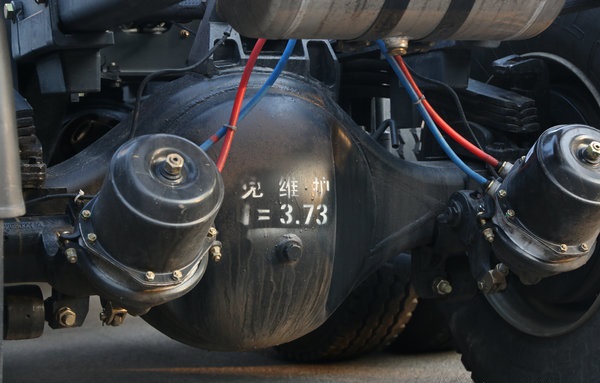 如上面的圖片所示,后橋的減速比為3.73,意思是傳動軸轉(zhuǎn)動3.73圈,后輪轉(zhuǎn)動1圈。嚴(yán)格意義上來說,后橋速比應(yīng)該是盆齒輪齒數(shù)除以小錐齒輪齒數(shù)得出,如果是多級減速的話還需要加乘其他減速級的系數(shù)。