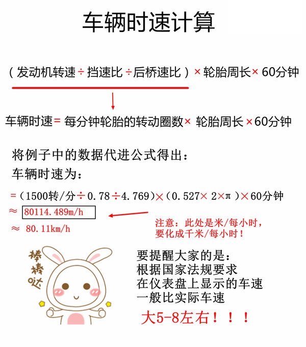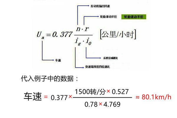 這個公式需要的數(shù)據(jù)有發(fā)動機的轉(zhuǎn)速、輪胎滾動半徑、變速箱速比和驅(qū)動橋速比這四個數(shù)據(jù),計算方式也更加簡單。