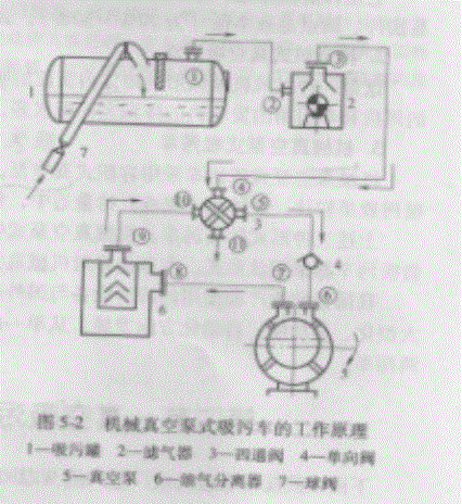 此時(shí)如果吸污罐已經(jīng)有一定真空度(一般要在53.3KPa時(shí))打開球閥7,即可向罐內(nèi)吸進(jìn)污泥,一直到罐體吸滿,上述氣路不變。