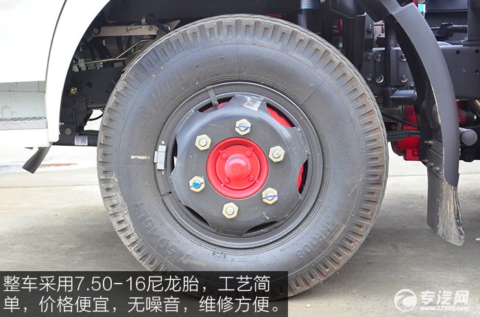 整車(chē)采用7.50-16尼龍?zhí)?,工藝?jiǎn)單,價(jià)格便宜,無(wú)噪音,維修方便。