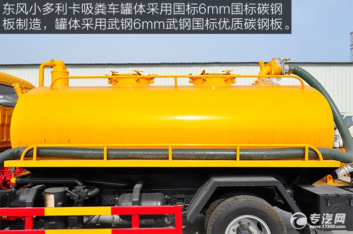 東風小多利卡吸糞車罐體采用國標6mm國標碳鋼板制造,罐體采用武鋼6mm武鋼國標優(yōu)質(zhì)碳鋼板,罐體堅固耐用,可滿足用戶對抽糞車的不同需求。
