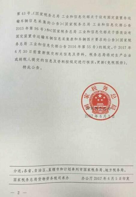 二、生產(chǎn)(改裝)或進(jìn)口的車輛符合本公告第一條規(guī)定的,按《國家稅務(wù)總局 工業(yè)和信息化部關(guān)于設(shè)有固定裝置非運(yùn)輸車輛信息采集的公告》(國家稅務(wù)總局 工業(yè)和信息化部公告2015年第96號)規(guī)定提交信息、照片及資料掃描件。