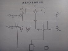 2.當(dāng)在野外自采水的情況下,水能通過水泵給罐內(nèi)供水。其操作程序是:在四位三通閥A處接一個膠管通入地面水源使三通球閥A和C口相通,關(guān)閉球閥7、8、 9、10,打開4,踏下離合,打開取力器開關(guān),慢慢松開離合(千萬不可過快,否則將會損壞取力器或變速箱),使水泵開始工作,即可向罐內(nèi)加水,停止工作后開關(guān)回位。