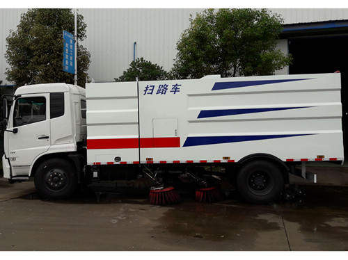 東風(fēng)天錦大型掃路車,掃地車刷毛采用中置四掃刷、吸口后置的布置方式,使得整車結(jié)構(gòu)布置簡捷、清掃效果良好。大型掃路車的垃圾箱及水箱為全部采用不銹鋼材料制作;垃圾箱與水箱為整體結(jié)構(gòu),水箱在垃圾箱的底層使垃圾箱底板預(yù)傾角高達(dá)12°以上,便于垃圾傾倒干凈。垃圾箱頂部設(shè)置了導(dǎo)流槽及較大面積過濾網(wǎng),能夠充分提高降塵效果,使的垃圾堆積均勻,增加有效容量,減少因輕浮物堵塞濾網(wǎng)而產(chǎn)生的空氣阻力。