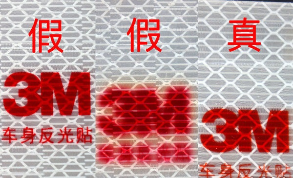 反光貼作為卡車必備的小配件,雖然看上去不起眼,但是因?yàn)橐?guī)定每輛車都必須要設(shè)置,所以在市場(chǎng)上也充斥著大量的假貨。以常見的3M反光貼為例,真?zhèn)巫蠲黠@的區(qū)別就是通過反光貼上的信息標(biāo)識(shí)進(jìn)行判斷。正品3M反光貼紙會(huì)清晰的標(biāo)注著制造商標(biāo)識(shí)、3C認(rèn)證標(biāo)識(shí)以及產(chǎn)品等級(jí)三種信息,如果沒有任何信息或者信息不全的就肯定是假貨。
