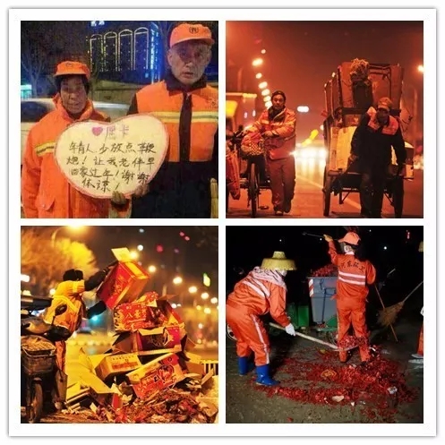 “少放點(diǎn)鞭炮,讓我老伴早點(diǎn)回家過年!”,2017年2月4日,一張環(huán)衛(wèi)工夫婦呼吁少放鞭炮的圖片在微博、微信朋友圈中瘋傳。