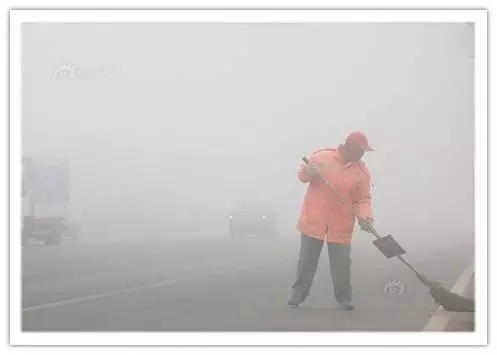 18遇到惡劣天氣,學(xué)??梢酝Un,市民可以不出門,而環(huán)衛(wèi)工則沒有辦法避開,甚至連保護(hù)措施都沒有,最多只是戴上口罩而已。2014年3月24日早晨,一名環(huán)衛(wèi)工在能見度不足百米的遼寧省大連市金州新區(qū)拓展零號(hào)路上保潔。