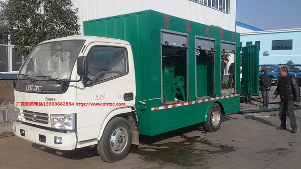 污水處理車是我公司專門針對環(huán)衛(wèi)疏通保潔公司設計制造的,采用圓筒濾網(wǎng)加無軸螺旋的結構對化糞池的污物進行處理,實現(xiàn)固液分離,可即抽即排。抽出的污物不需要 像傳統(tǒng)的吸污車那樣運到另一個地方倒掉,可當場處理,處理后的污水通過市政管網(wǎng)排走,糞渣可直接打包,當生活垃圾處理。即節(jié)省了運輸費用,又提高了處理速度。