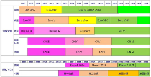 三、重型發(fā)動(dòng)機(jī)全球排放標(biāo)準(zhǔn)發(fā)展歷程: