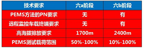 國六分為a階段和b階段。2020年1月1日?qǐng)?zhí)行國六 a階段;2023年1月1日?qǐng)?zhí)行國六 b階段。在b階段,增加了整車試驗(yàn)PN(粒子數(shù)量)要求,增加遠(yuǎn)程監(jiān)控車載終端要求,提升了海拔高度以及擴(kuò)大了PEMS測試的載荷范圍。