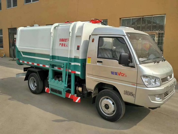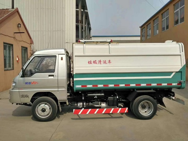 掛桶式垃圾車是垃圾車中的一個重要分支。主要組成結(jié)構(gòu)是自卸式箱體帶有掛桶提升機(jī),可以方便的自裝卸120L/240L等不同規(guī)格的標(biāo)準(zhǔn)垃圾桶。小型的藍(lán)牌掛桶式垃圾車(自裝卸式垃圾車)容積3立方左右,高度2米以內(nèi),適合下地下室收集轉(zhuǎn)運(yùn)生活垃圾。但是優(yōu)于汽油車所配變速箱一般較小,大多不帶取力器接口,很多時候制作掛桶式垃圾車的時候,液壓系統(tǒng)取力都是用電磁取力器取力,然后用皮帶驅(qū)動液壓泵工作。正常情況下尤其是南方地區(qū)工作都沒有問題,在北方尤其是極寒地區(qū),橡膠制作的皮帶會在低溫環(huán)境下變脆,長時間工作后會疲勞,容易斷裂,影響生產(chǎn)。針對這一情況,垃圾車廠家和底盤上家合作,推出了幾款帶有取力器接口的小型掛桶式垃圾車底盤。今天給大家介紹的是福田馭菱汽油后雙輪掛桶式垃圾車。