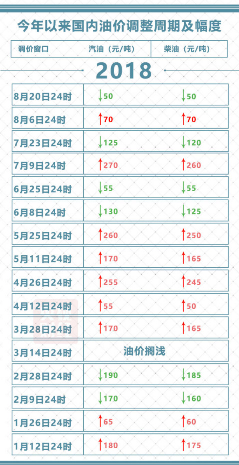 年內(nèi)油價(jià)變動(dòng)一覽:9漲6跌1擱淺