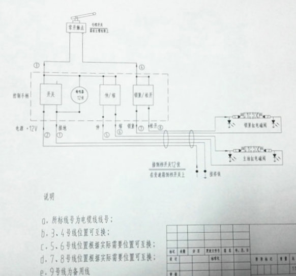 從以下的電器原理圖可知:只有行程開關(guān)閉合后,控制盒才能控制鎖油缸的鎖緊和松開,當(dāng)主臂舉升后,行程開關(guān)復(fù)位,開關(guān)觸點(diǎn)斷開,控制盒不能控制鎖油缸的動(dòng)作,起到保護(hù)作用,防止誤操作。