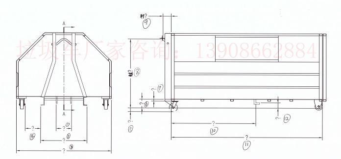 定制勾臂式垃圾車或勾臂式垃圾車廂時(shí)的關(guān)鍵尺寸