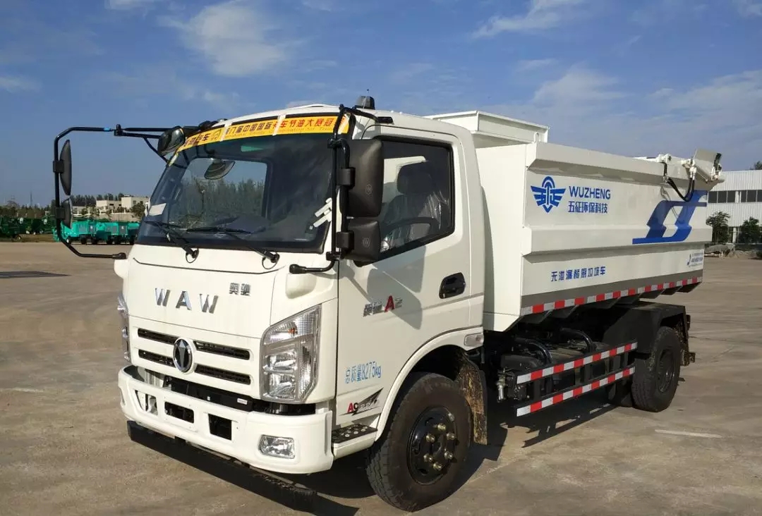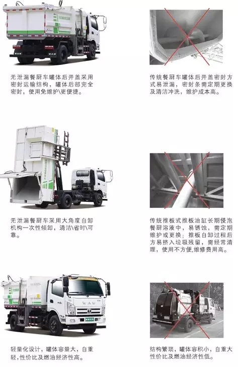 無泄漏餐廚垃圾車是垃圾車廠家根據(jù)國(guó)內(nèi)餐廚垃圾收集處理現(xiàn)狀,在吸收國(guó)內(nèi)外同類產(chǎn)品優(yōu)點(diǎn)的基礎(chǔ)上,自主創(chuàng)新研發(fā)的真正做到無泄漏的餐廚垃圾運(yùn)輸車。該車投料口與卸料口均位于垃圾箱頂部并且加裝密封蓋進(jìn)行徹底密封,徹底杜絕了餐廚垃圾收集過程中泔水滴漏造成的二次污染。箱體采用不銹鋼材質(zhì)、自重輕、容積大,有效載質(zhì)量可達(dá)5噸。該車采用專利舉升卸料機(jī)構(gòu)進(jìn)行垃圾傾卸,可舉升近90°,垃圾傾卸徹底,方便、快捷。